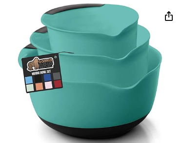 Mixing bowls with pouring spout- This is probably my BEST purchase and I could not live without them. These mixing bowls come in 3 different sizes and I use them all. Any more I make large batches of lotion each time, as my demand has gone up. But I still use all the bowls. In fact, I ended up purchasing a second set and use them every time! Bonus points because they are the same color as the color I chose for my business. I did learn the hard way recently that these bowls are NOT microwave-safe. I was melting down some coconut oil for my bath bombs and it sparked! So keep that in mind.